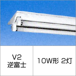 逆三角形型の一般的な10W×2灯用蛍光灯器具です。グロー式。低力率形。