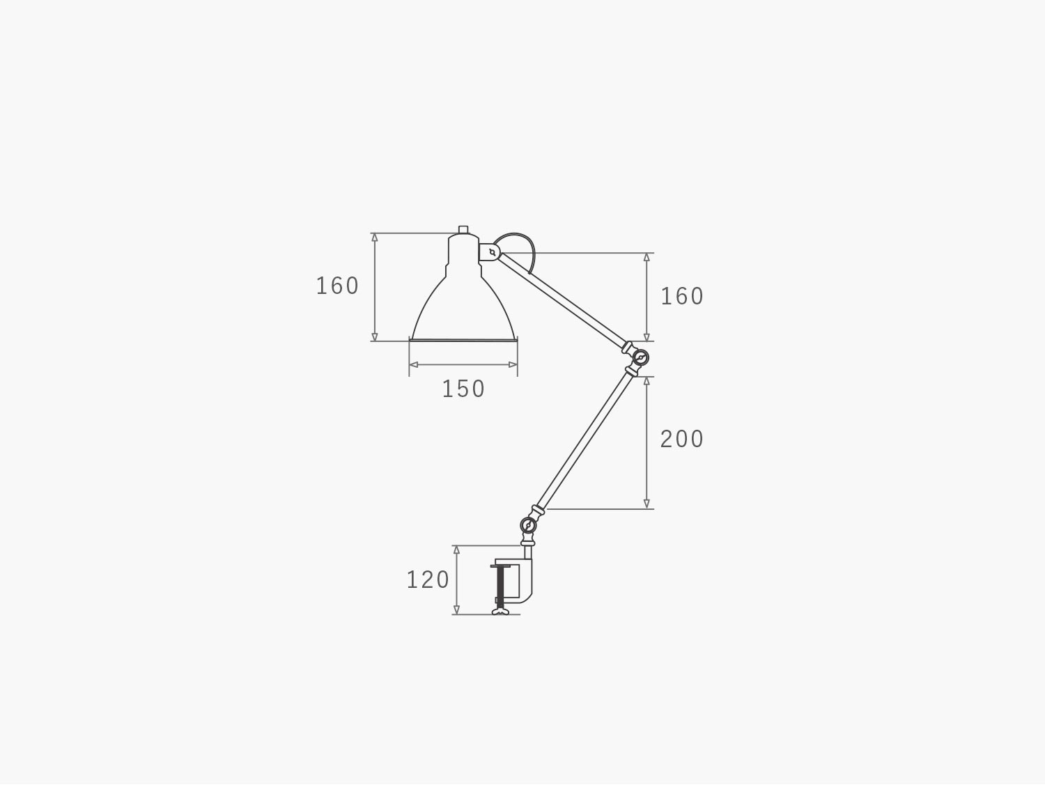 机や棚、ベッドのヘッドボード等に挟み込んで固定するタイプの照明です。