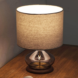 ボリュームのあるぽってりとしたウッドベースとファブリックセードが北欧を思わせるテーブルライト。