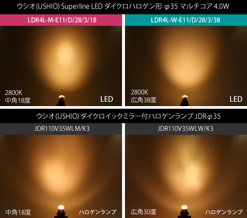 ダイクロハロゲン(JDR)が発する光の質やサイズ、寸法まで忠実に再現、JDRφ35ハロゲンランプからの交換に適したLED電球です。