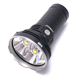 ACEBEAM X45は、18650電池を4本を電源に、CREE XHP70.2を4個駆動。最大18000ルーメンを発揮するモンスターマシンです。大光量ながら720グラム、全長158mmと軽量コンパクトです。