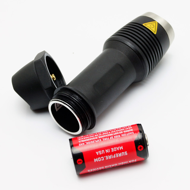 CR123Aリチウム乾電池1本使用で400ルーメン。単焦点のコリメータレンズを使用した小さくてとても明るいライトになります。