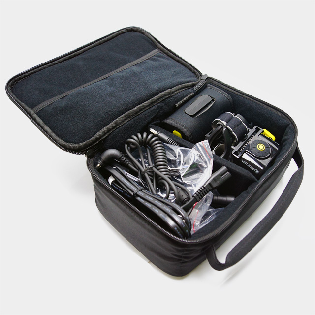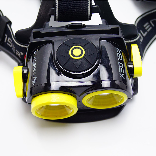 ライトユニットに搭載された2つのLEDはそれぞれ独立したフォーカスレンズを持ち、各レバーにてワイドスポットの切替が可能。例えば、片方はスポットに、もう片方はワイドにすることで手前から遠くまで死角のない配光が得られます。