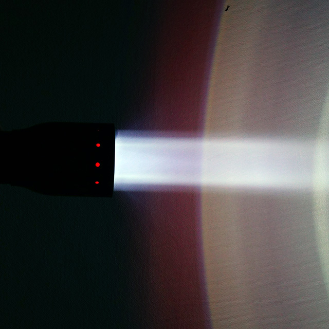 従来品に比べ明るさが大幅にアップし、スイッチボタンも押しやすくなりました。比較的明るさを抑えたモデルですが、可動範囲の広いフォーカスレンズにより最大照射距離は270mと大変優れております。