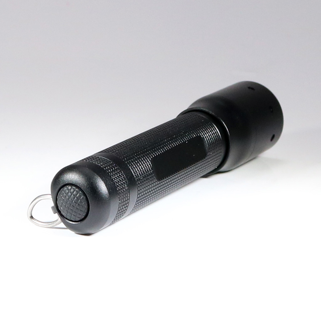 把持部のサイズは直径18.5mm、全長100mmと手のひらに完全に隠れるサイズですが、LEDLENSERと一目で分けるデザインと、質感の高さが魅力的です。