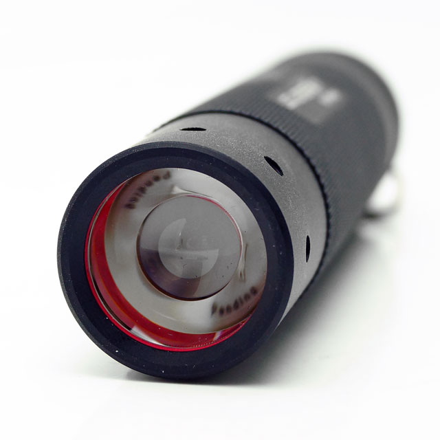 把持部の直径は約26.2mm 単四電池4本モデルに比べると細く握り易いものです。 単焦点のスポット配光。割り切った無駄のないデザインと操作性が魅力です。