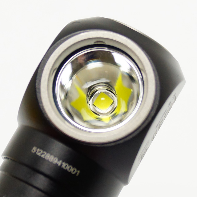 CREE XM-L2 LED搭載。浅めのスムースリフレクターを使用し、比較的近距離からでもワイドに広がります。スイッチ操作で5段階の調光が可能。