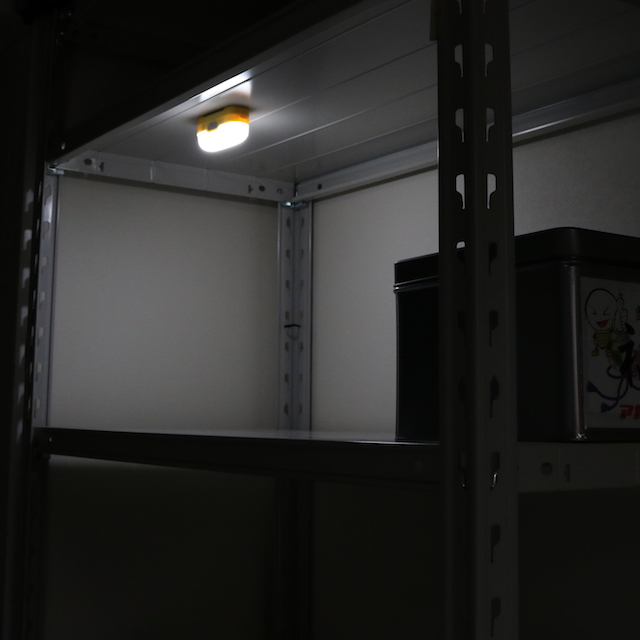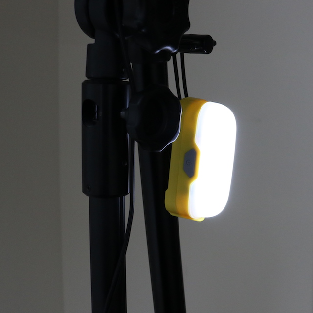 白色LEDの点灯はスイッチの長押しで行います。点灯中にクリックすることで、Low、Med、Highの3段階に調光できます。消灯する場合にはもう一度長押しします。