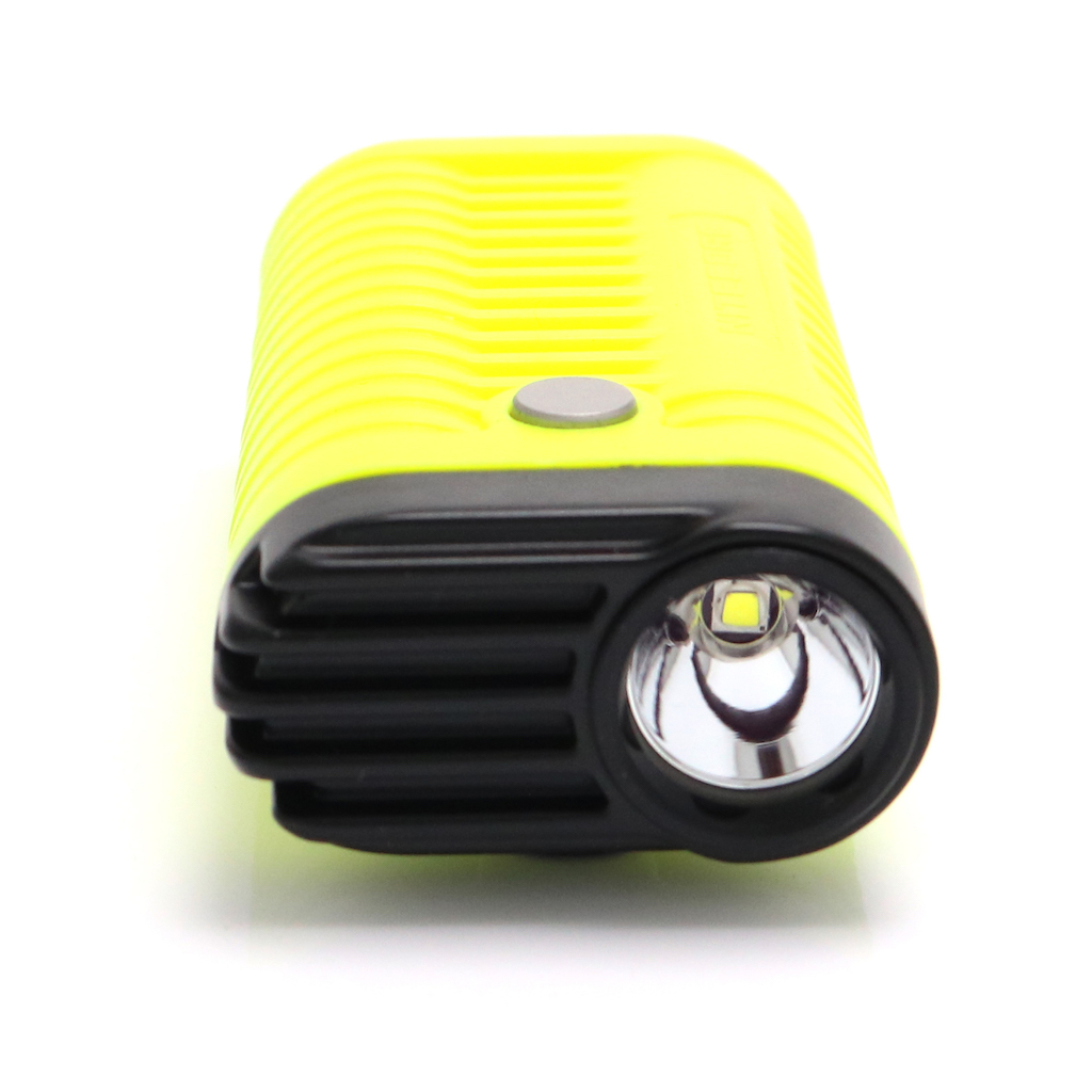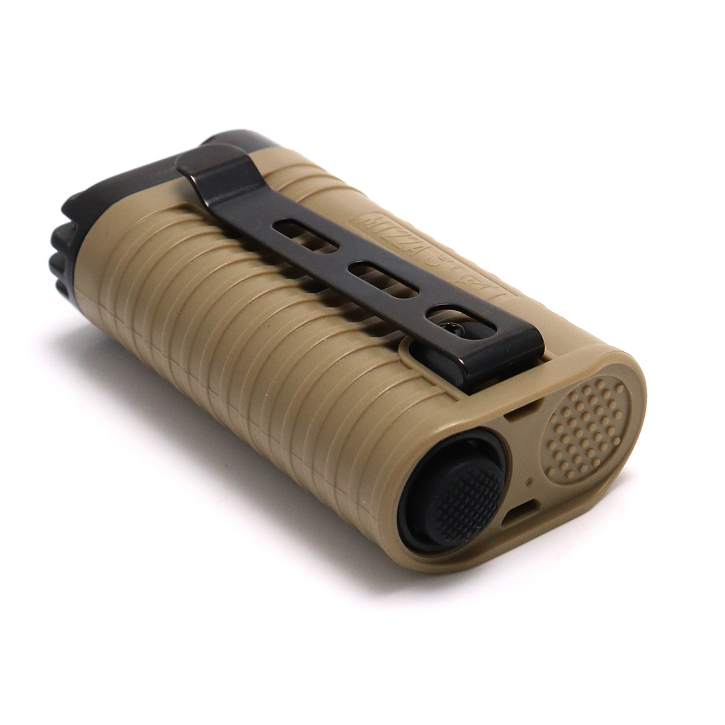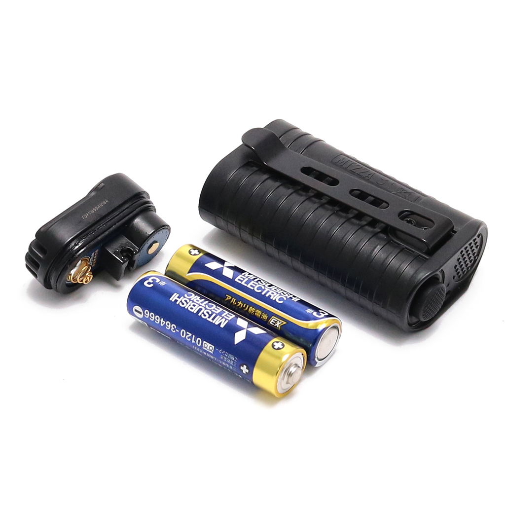 NITECORE MT22Aは、単三電池2本を並列で収納する新しい形状のLED懐中電灯です。ボディ素材はポリカーボネート樹脂。非常に軽量で強靭な素材になっています。ヘッドの発熱を手に伝えにくいため、ターボモードでの連続使用時にも不快感はありません。一方、ヘッド部分はアルミダイカストで熱伝導に優れ、また放熱フィンも備えています。