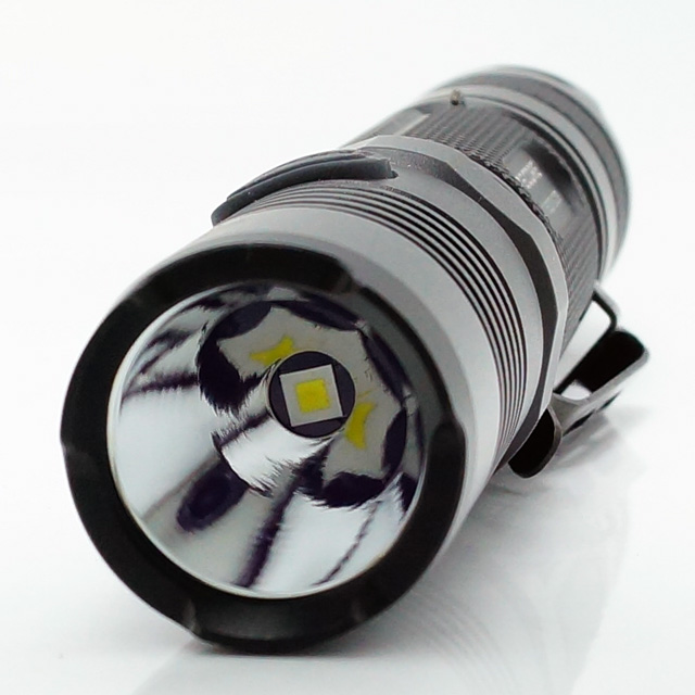 CREE XP-L High Intensityを搭載。鏡面リフレクターはやや深く集光系の配光。XM-L2を搭載したP12よりは遠方照射性に優れますが、ヘッドサイズは小さいのでターボヘッドモデルと比べると遠方照射に優れているとは言えません。このサイズのモデルとしては可能な限り明るく照射距離にも優れたモデルです。