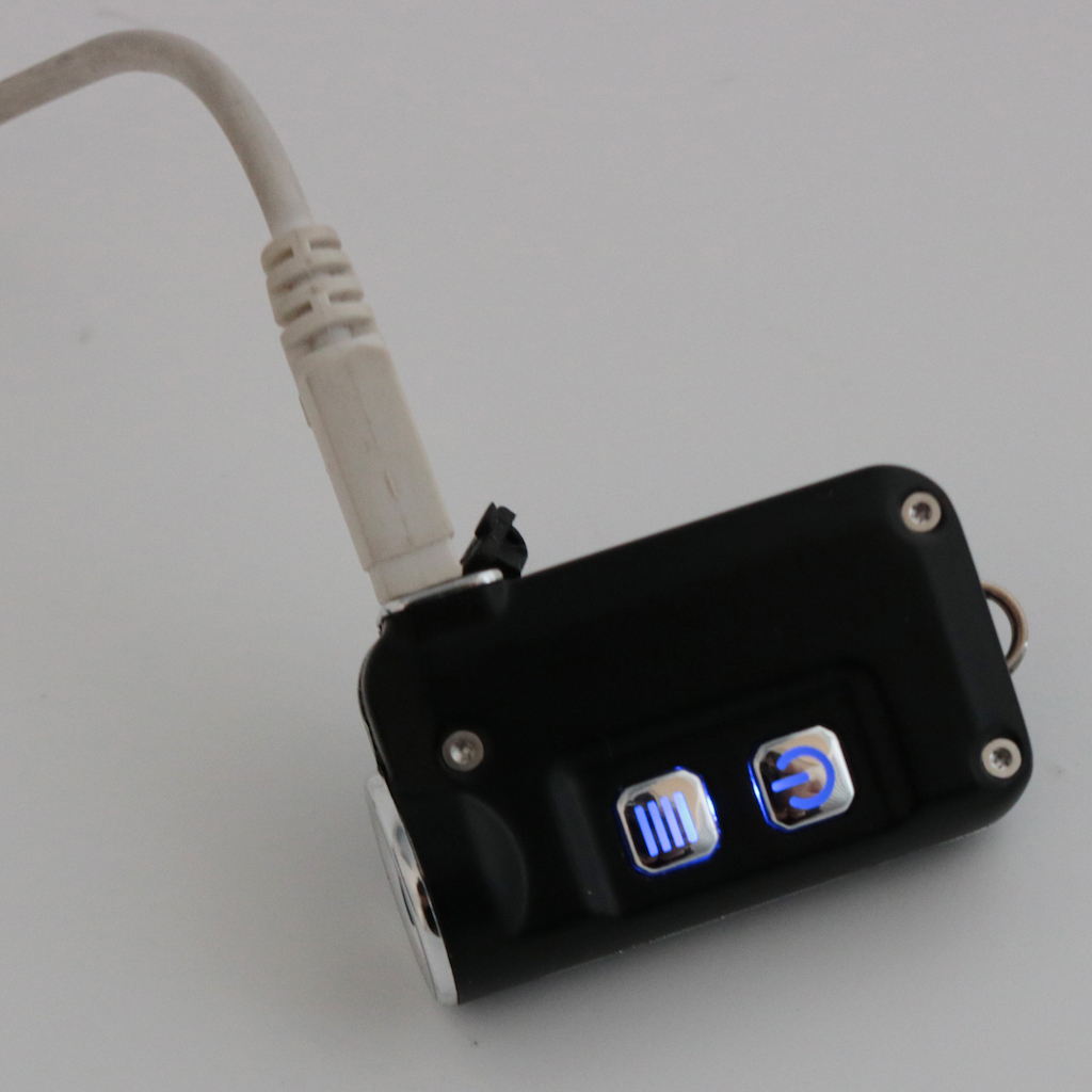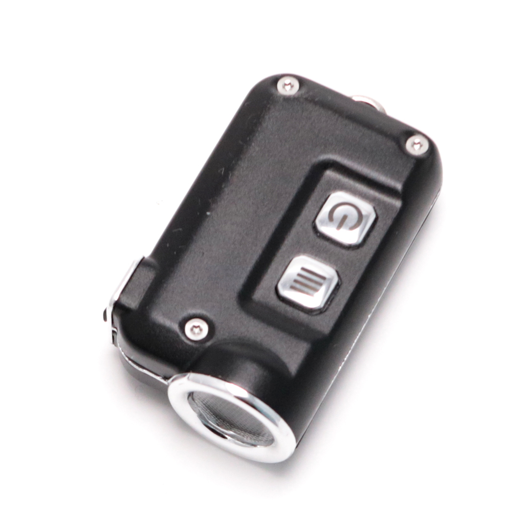 TINIのサイズは縦43.3mm、横25.4mmしかありません。非常にコンパクトです。電源スイッチとモードスイッチの2つのスイッチを備え使い勝手も悪くありません。キーリングを通すことができ、キーライトとして活用できます。