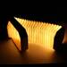 商品名の通り、蛇腹型に折りたたまれたシェードを引き出すと、優しく点灯します。シェードは一見紙のように見えますが、実際には高い耐久性を誇るデュポン社のタイベックです。シェードは直線的に引き出すほか、円形になるように開くこともでき、様々な光の表情を楽しめます。光量は最大250ルーメンと実用上十分な明るさ。雰囲気づくりを兼ねながら、防災にも役立つアイテムです。