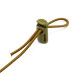 中央の二つの穴にコードを通してください。コードの末端に使用した場合はコードの引っ掛け部分に出来ます。コードの間に使用すればコードの絞込みや調整時にスムーズにコードが動かせます。
