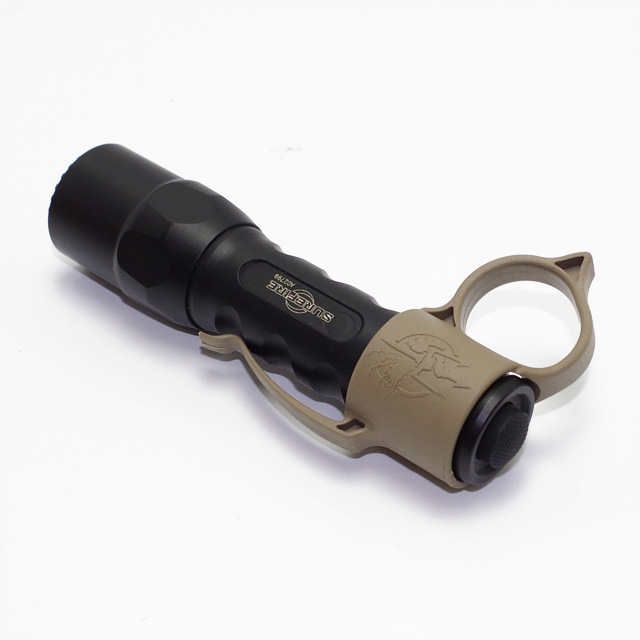 銃器と併用することが考慮されており、リングに設けられた突起部を親指で押すことでライトが引っ張られスイッチボタンを中指の第二間接付近で押すことが出来ます。