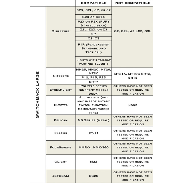 SUREFIRE以外にもOLIGHTやJETBEAM、NITECORE等での対応のモデルがあります。