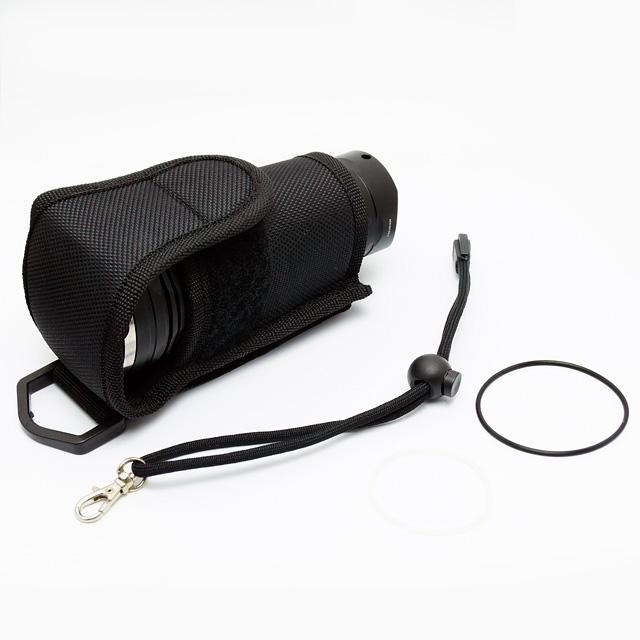 エアロクラフトアルミ合金から削り出されたボディにはTYPE3HA表面処理が施されております。ステンレスベゼルを装着し、低反射コートされたガラスレンズ風防を守ります。リフレクターは鏡面リフレクターを採用。一つ一つのリフレクターは小さく浅いですが、実際に照射すると3つの光軸は一つに重なり1本の強い光軸として遠方を照らすことが可能です。周辺光も充分に発生しますので一帯を照らすことにも適しております。基本的には同社のT60CSのリングセレクターモデルとなります。