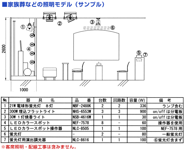 ■家族葬などの照明モデル(サンプル)
