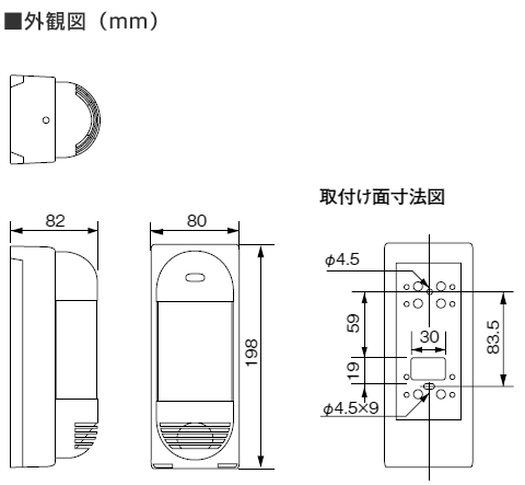 ※パッシブセンサ(人感センサ)のため車両の検知には適しません。