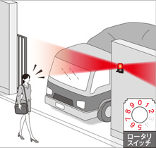 タイマースイッチなどと連動させることで、減光が可能。半面回転なら店内側のみ消灯など、眩惑を防止できます。
