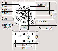 取付ピッチが50,70,120,140mmのタイプ。