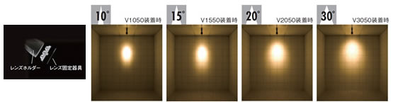 専用レンズ(配光角10°・15°・20°・30°)との組み合わせにより、用途に合わせて配光角を選択できます。