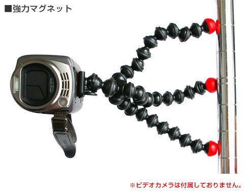 ■強力マグネット付きタイプ ネオジム磁石をつけることによって、どんな金属部分にでもフレキシブルな三脚を取り付けることができます。金属ポール、冷蔵庫、金属部分さえあればどこでも取り付け可能です。