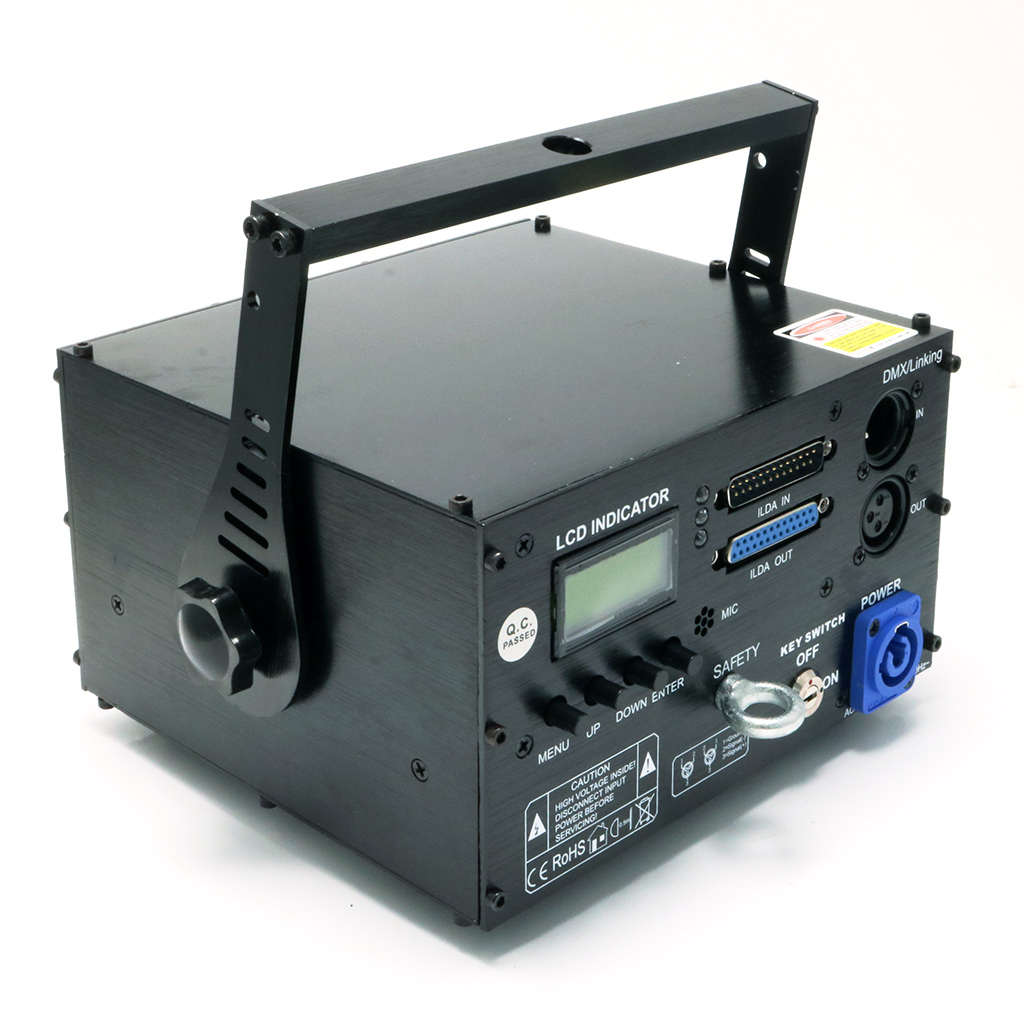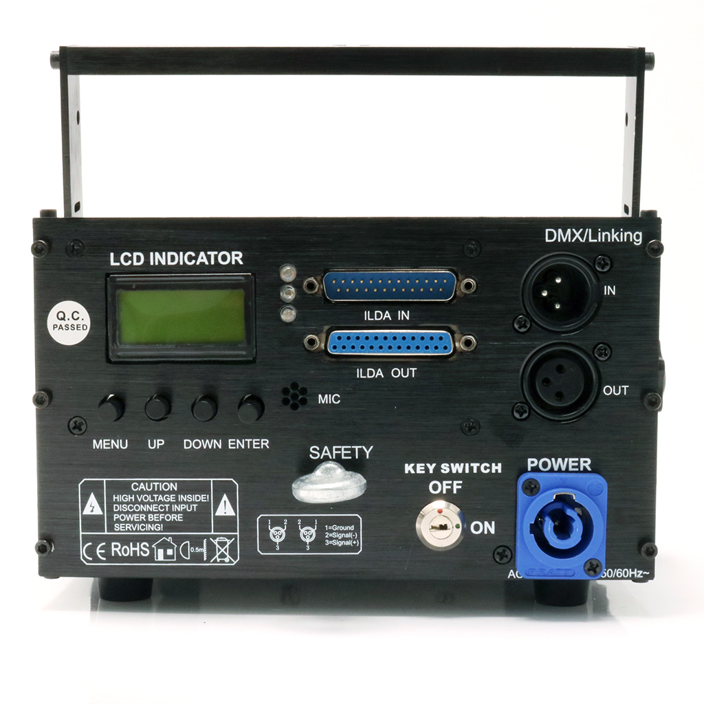 手のひらサイズながらRBG 1Wの高出力 ILDA対応 15Kスキャナー DMX対応とフルスペックなレーザーです。