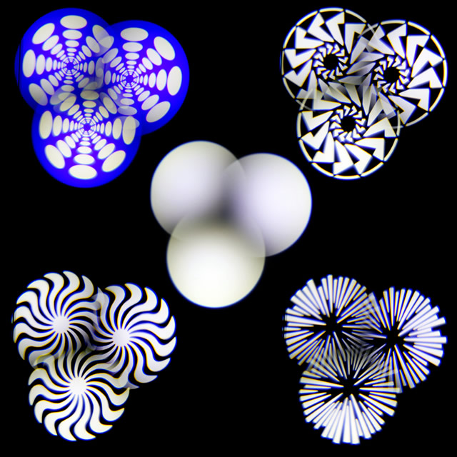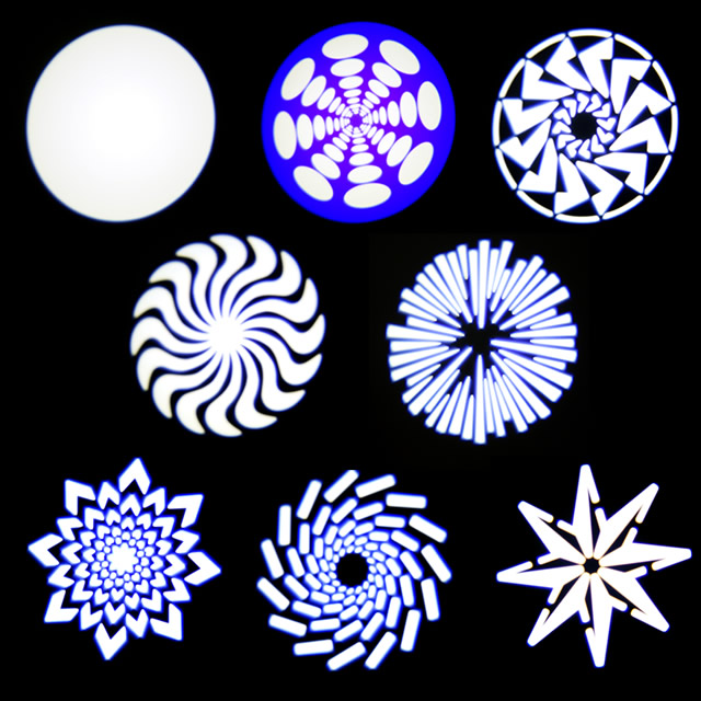 インデックス可能な7種の回転ゴボ1ホイール構成。