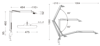 デスクトップを照らすことができる反射率のよいデザインセードを採用。 |